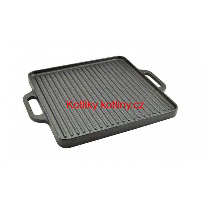 Oboustranná grilovací deska z litiny v masivním provedení, ideální pro grilování, smažení a pečení steaků, masa, ryb, zeleniny a jiných pochutin.