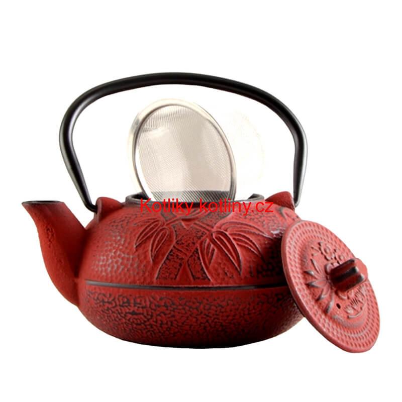 Litinový čajník 600 ml červený