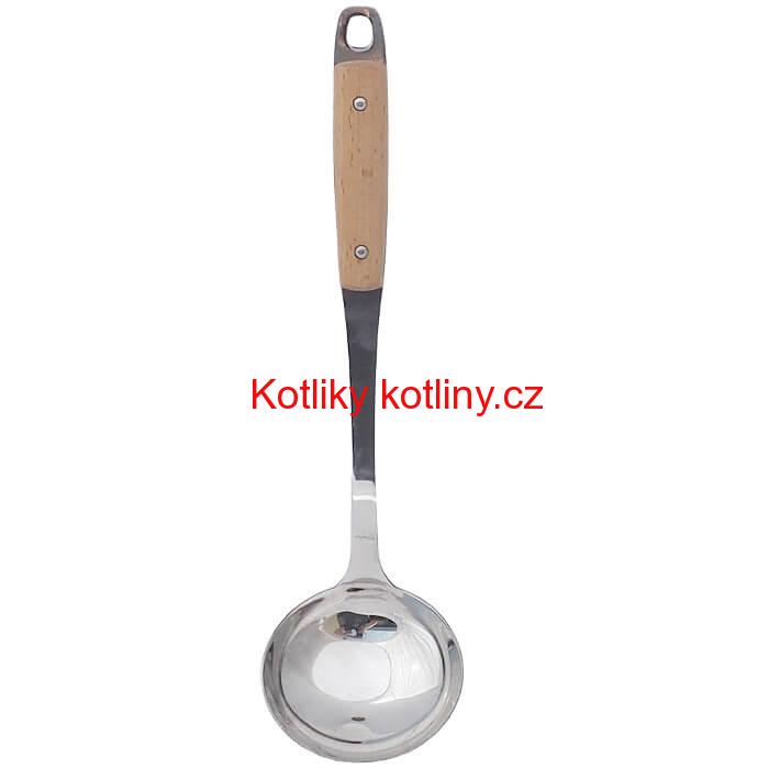 Kvalitní nerezová naběračka s dřevěnou rukojetí.