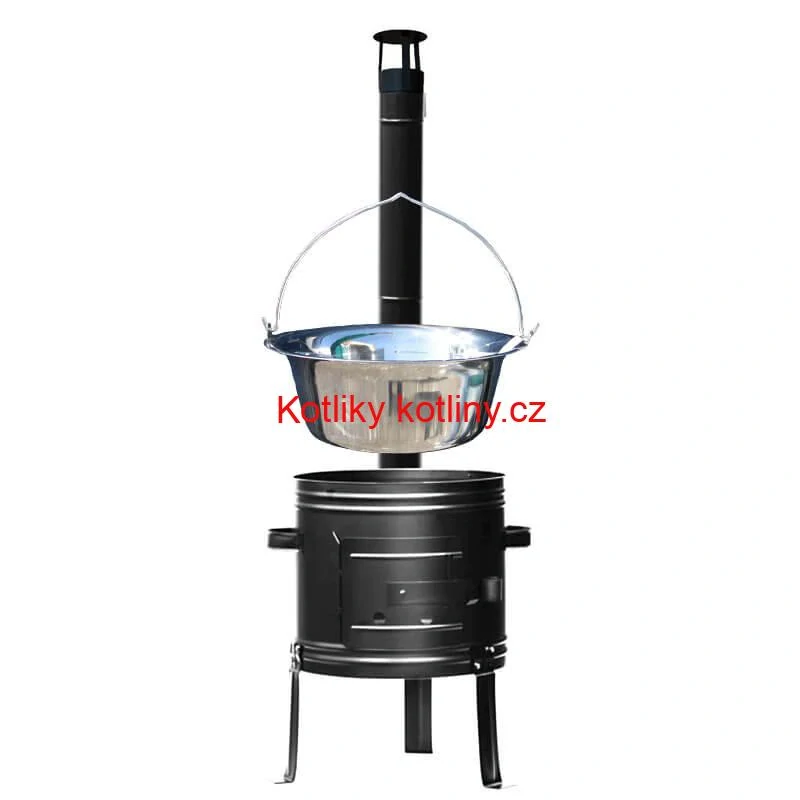 Kovová kotlina pod kotlík s demontovatelnými nožičkami i úchyty pro lepší převoz a skladování.