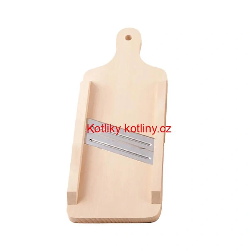 Jednoduchý a spolehlivý nástroj na krájení zelí. Vyrobený z pevného dřeva, se dvěma extra ostrými čepelemi, které si poradí is velkou hlavou zelí.