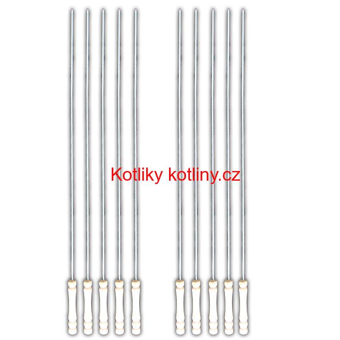Špízové jehly. Počet kusů v balení: 10 ks. Velikost: celková délka is rukojetí: 49,5 cm. Délka jehly bez rukojeti: 41 cm. Materiál: kov