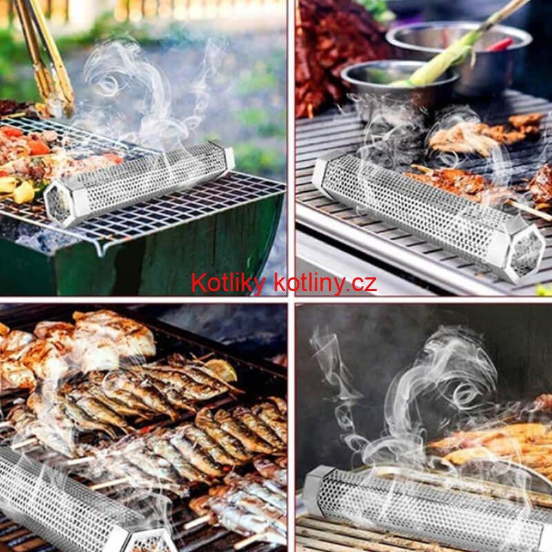 Do nerezové trubice nasypte vonné dřevěné lupínky a vytvořte tak kouřové aroma při grilování potravin – od masa až po zeleninu.